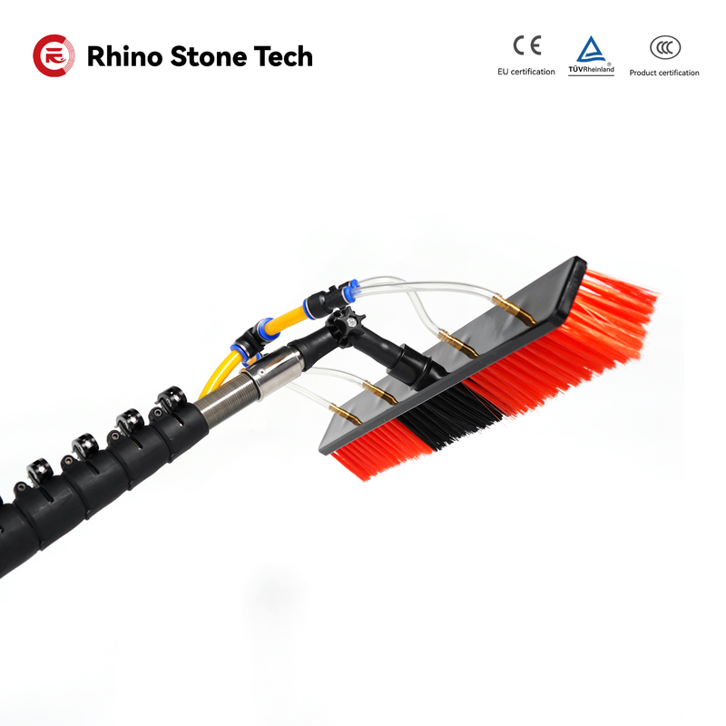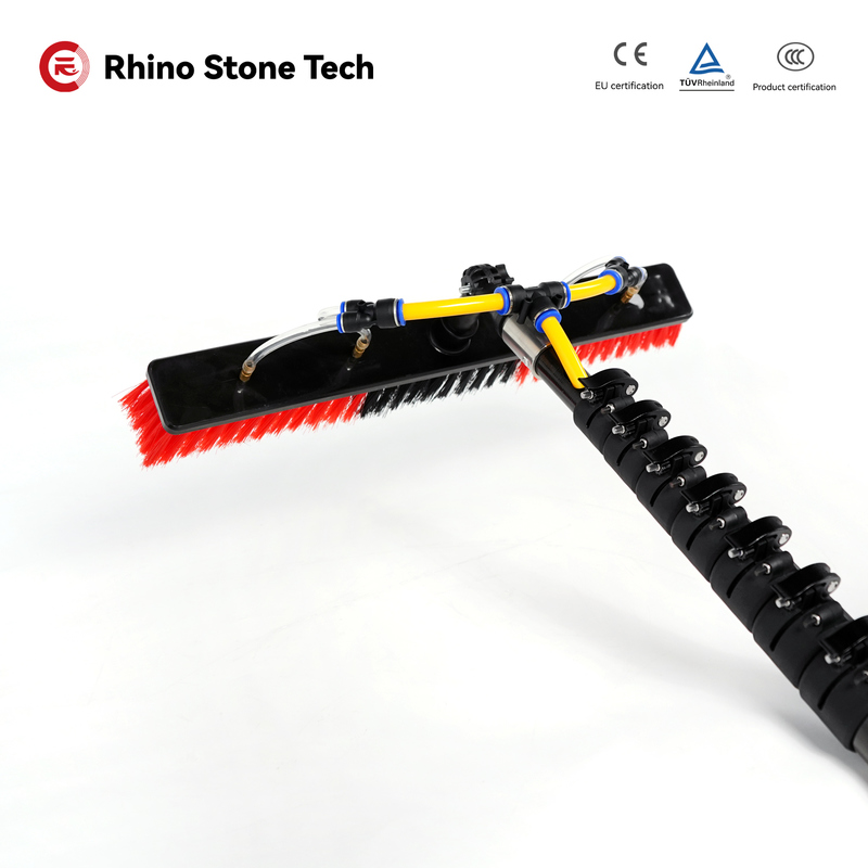 Ideal for high-altitude surface maintenance of overhead glass curtain walls and solar panels, this cleaning tool is fitted with an upgraded next-gen reinforced carbon fiber telescoping pole, boasting a lightweight build and easy maneuverability. Its high-density, abrasion-resistant bristles remove stains powerfully while keeping surfaces intact, and perform smoothly for both dry and wet cleaning tasks.