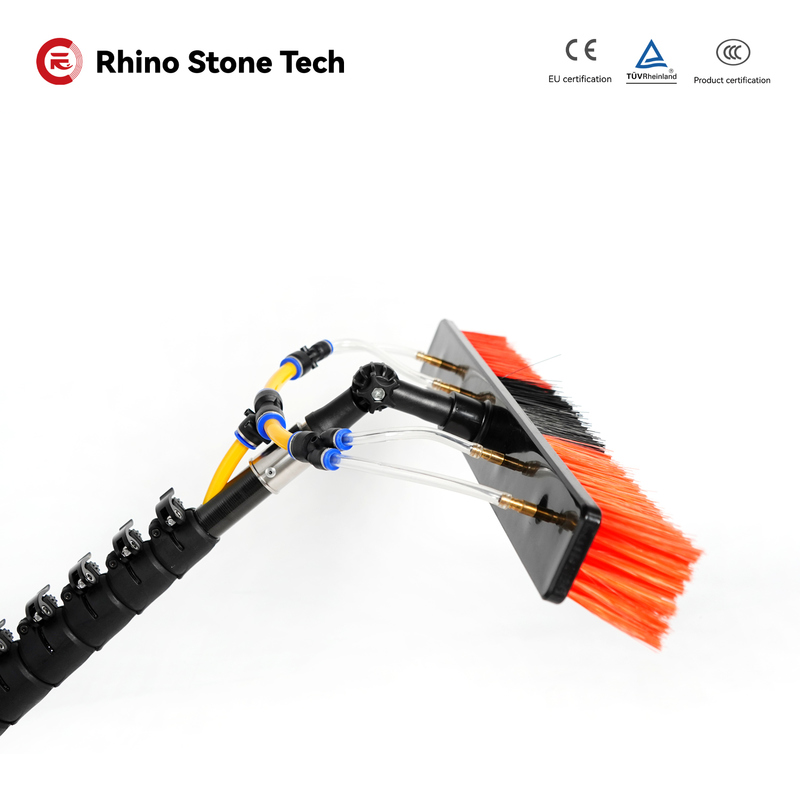 Our Strengths 1.Carbon Fiber Grip It comes with an upgraded next-gen reinforced carbon fiber grip, providing a lightweight design and flexible handling experience. 2.Adjustable Telescoping Pole Fitted with a telescoping pole that can be adjusted to multiple lengths, allowing effortless access to tall or large-sized panels. 3.Long-Lasting Bristles Premium-quality bristles clear away dirt and dust efficiently, with no harm caused to solar panel surfaces. 4.Flexible Brush Head It features multi-angle tilting functionality, ensuring thorough cleaning of hard-to-reach spots and corners. 5.Thickened Water Tube The tube wall is thickened to offer freeze resistance and wear protection, withstanding temperature fluctuations to extend its service life.
