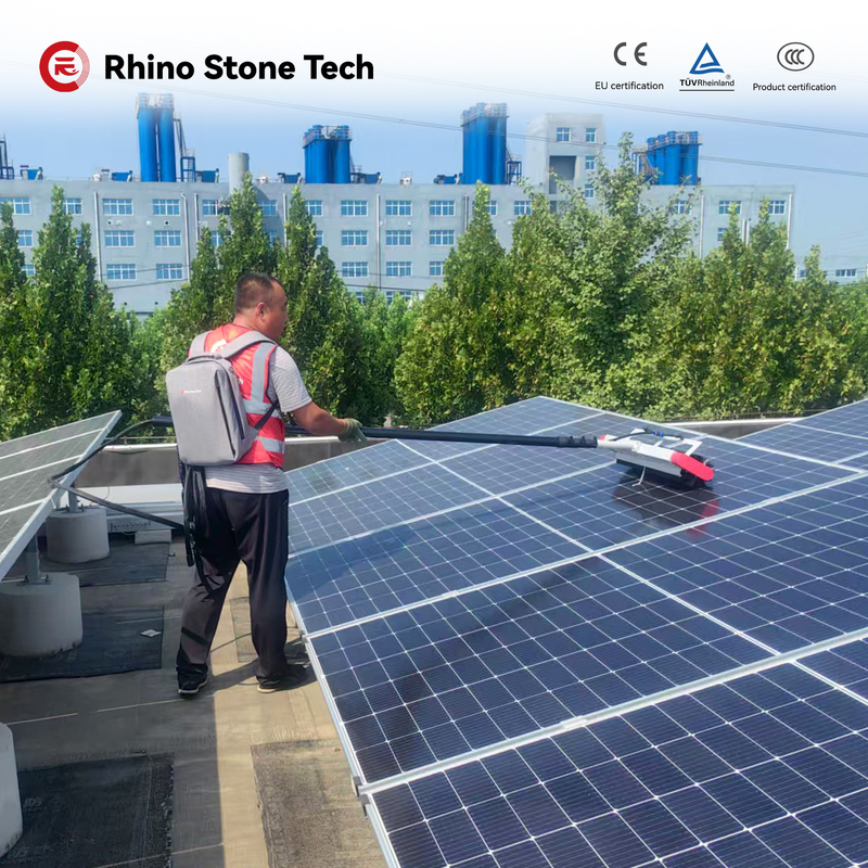 Module Design Handheld Solar Panel Cleaning Roller Brush Photovoltaic Cleaner Water Spray PV Washing