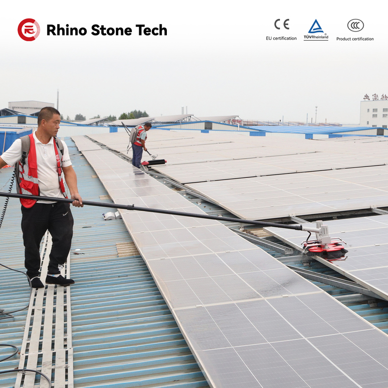1.5-Lobe Brush Head: Unlike conventional disc-shaped designs, the unique 5-lobe brush head is lighter and more energy-efficient. It greatly boosts cleaning efficiency, serving as the perfect tool for single-person high-performance photovoltaic panel cleaning.