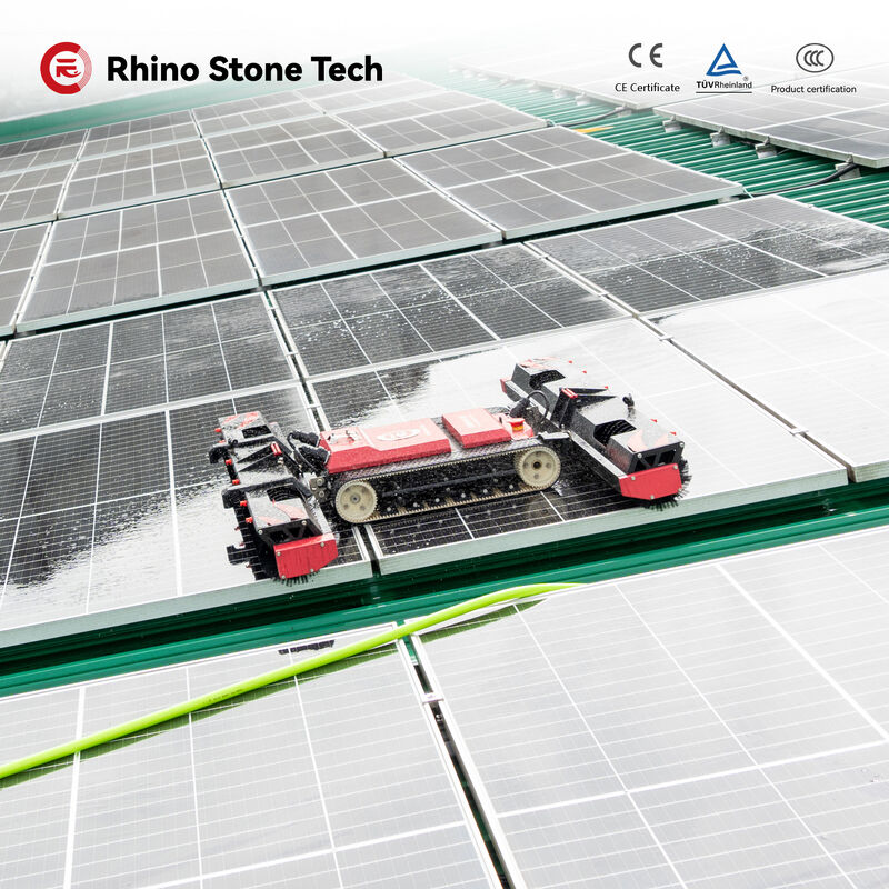 Two robust extra-wide floating roller brushes—one deployed at the front and the other fixed to the rear—are built into the RHINO700-EC6 Remote-Controlled Crawler Solar Panel Cleaner, enabling it to retain non-stop contact with the surfaces of solar modules. This premium configuration yields comprehensive cleaning results with no vestige of leftover streaks. A distinct competitive merit of the robot is its intelligent parking and stowage system: it not only offsets brush warping but also actively prolongs the equipment’s operational life span. Besides, the cleaner comes with an in-built anti-overturn system, which notably boosts operational safety. Even when traversing irregular terrains, this system secures steady functionality, rendering solar panel cleaning more dependable, highly productive, and remarkably less reliant on manual effort.