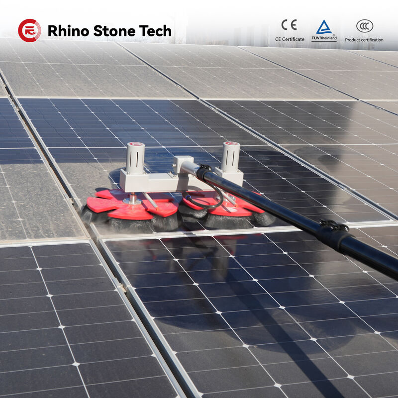 Boasting a brand-exclusive, unparalleled five-petal brush head design, the RHINO700-EH2 Dual-Disc Solar Panel Cleaner is developed around the fundamental concept of "High Efficiency, Safety & Panel Compatibility". Integrated with bidirectionally rotating brush heads and antistatic nylon bristles, this cleaning tool can quickly remove tough dirt and grime while offering dependable protection to prevent solar panels from scratches and other possible damages. It is also equipped with a high-strength, flexible and antistatic carbon fiber telescopic rod, which effectively reduces operator fatigue, improves operational safety and prolongs long-term service life—serving as a high-end solution for efficient solar panel maintenance.