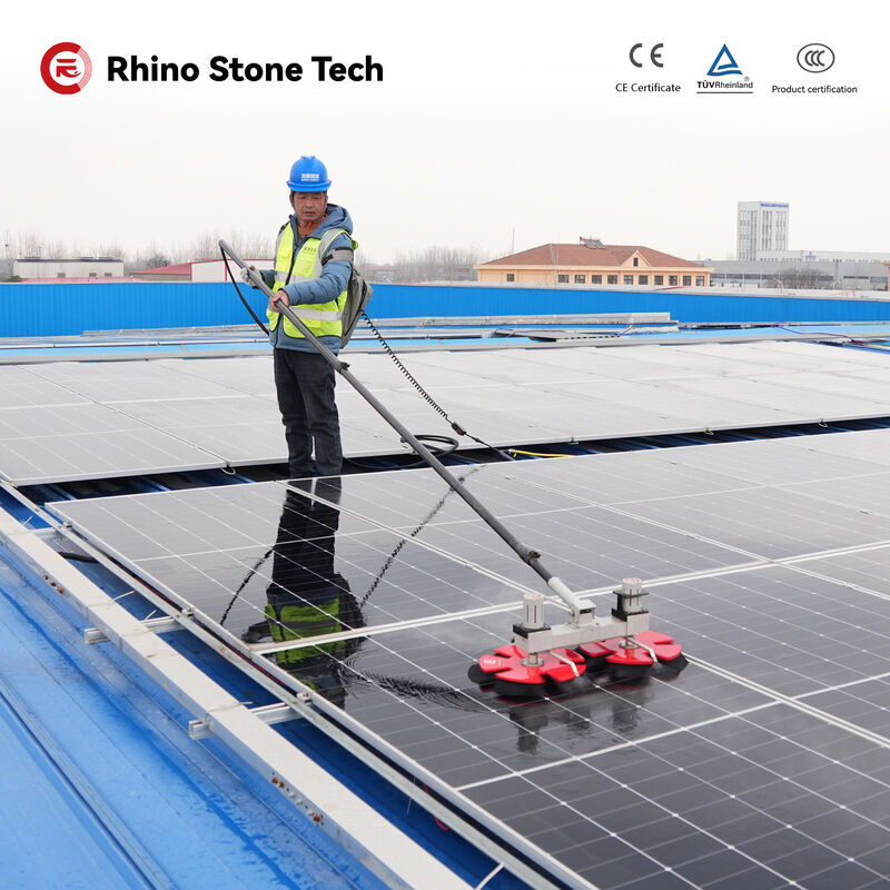 Designed based on the core concepts of High Efficiency, Safety and Panel Compatibility, the RHINO700-EH2 Dual-Disc Solar Panel Cleaner is fitted with an exclusive five-petal brush head design. Featuring bidirectionally rotating brush sets and anti-static nylon bristles, this equipment can quickly eliminate obstinate dirt and dust, while offering strong surface protection to shield solar panels from scratches and accidental damage. Made with a high-strength, flexible anti-static carbon fiber telescopic rod, it effectively reduces the work intensity and tiredness of operators, enhances work safety, and prolongs the product’s service life, making it the best choice for high-efficiency solar panel maintenance.