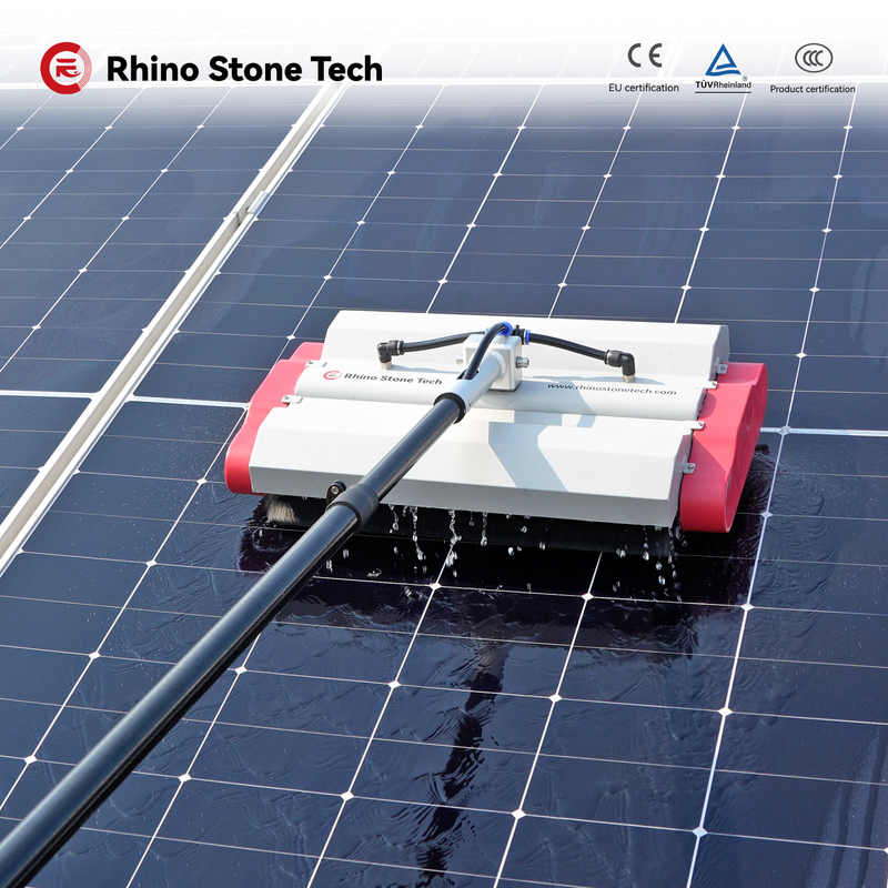 Cepillo de limpieza solar móvil de doble rodillo con batería y varilla telescópica de fibra de carbono de 3,6 m